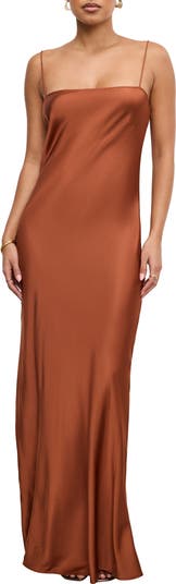 Spaghetti straps add to the seductive slinkiness of this maxi slipdress in luxurious and lightweight satin that skims your figure without clinging. The simple design allows for easy styling for various occasions, from casual outings to formal events.