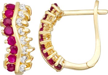 Twin trails of eight rubies and eight diamonds add vibrant sparkle to each of these earrings crafted from gleaming 10-karat gold.