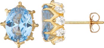 Perfect for everyday wear, these sparkling studs are centered with faceted lab-grown aquamarine.