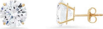 10K Gold Round Cubic Zirconia Stud Earrings