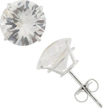 Faceted round-cut stones add vibrant sparkle to these delicate stud earrings crafted from bright 10-karat white gold.