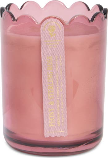 This candle features scalloped glass and a cotton wick, releasing a peony blossom fragrance layered with crisp rose top notes, a lush peony heart and a soft, powdery finish.