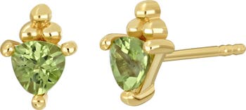 Polished stud earrings handcrafted from 14-karat gold are centered with semiprecious stones to add color and shine to your lobes.