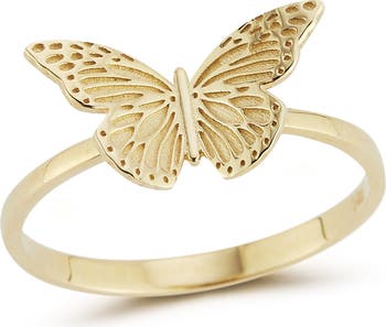 An etched butterfly adds whimsical charm to this dainty ring crafted from gleaming 14-karat gold.