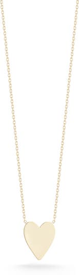 A charming heart-shape pendant suspends from a dainty chain necklace crafted from gleaming 14-karat gold.