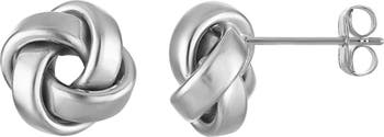 A smooth finish shines on these understated earrings fashioned in a knot silhouette.