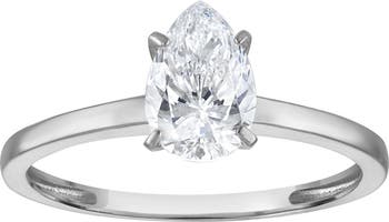 This 14-karat-gold ring brings powerful shine to your ensembles, centered with a teardrop-cut lab-grown diamond solitaire.