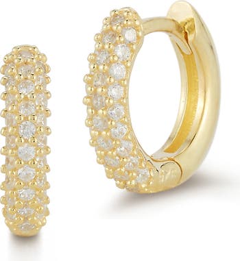 Brings a powerful glow to everyday ensembles witch cubic-zirconia-covered huggie hoop earrings crafted from sterling silver.