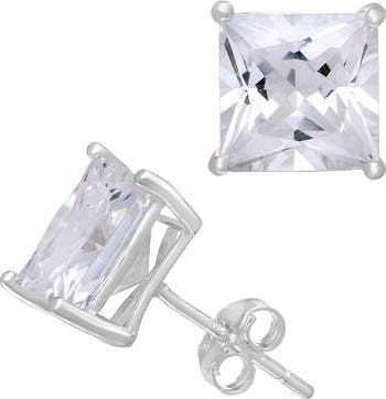 Show off glamorous sparkle with these 14-karat white gold stud earrings set with princess-cut cubic zirconia.