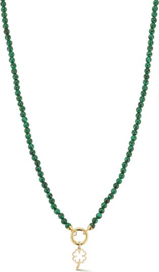 Semiprecious stone beads bring a pop of color to this dainty necklace suspending a removable four-leaf-clover charm.
