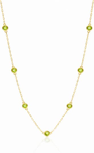14K Yellow Gold Peridot Station Chain Necklace