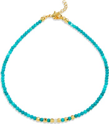Show off boho style with this beaded turquoise anklet finished in lustrous 18-karat gold plate with a single imitation pearl.