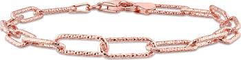 Textured links add a sun-splintering twist to this dainty paperclip chain bracelet crafted from sterling silver and plated in polished 18-karat rose gold.