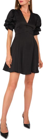 Puff sleeves provide a picture-perfect finish for an occasion-ready minidress with an impeccably flared skirt.