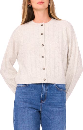 Build your sweater-weather wardrobe with this cozy crewneck cardigan knit with chunky cable stitching and warming ribbed trim.