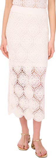 Crochet-stitched medallions keep the feeling breezy in a cotton midi skirt perfect for sunny-day adventures.