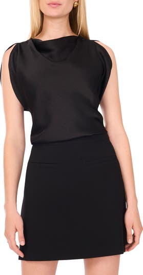 Add a lustrous layer to fun or fancy looks with a satin top designed in a draped fit.