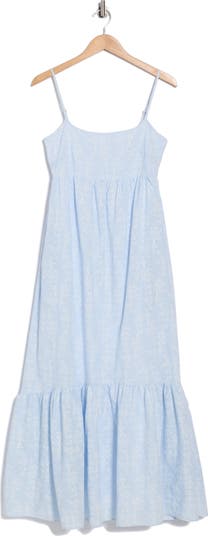 A pretty floral pattern dances around the hem of this airy cotton maxi dress cut in a charming Empire-waist silhouette.