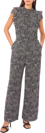 Fluttery cap sleeves frame this airy chiffon jumpsuit fashioned with a pretty back tie and handy pockets.