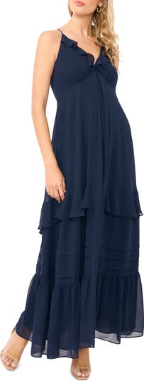 Fluttery ruffles cascade down this flowy chiffon maxi dress cut in a tiered silhouette and perfect for your next elevated outing.