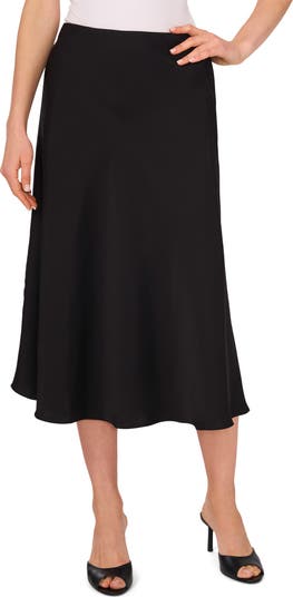 Simple details lend minimalist charm to this bias skirt cut from soft and shiny satin.
