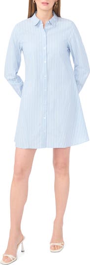Pencil-thin stripes run down this weekend-ready shirtdress cut from breathable cotton in an A-line silhouette.