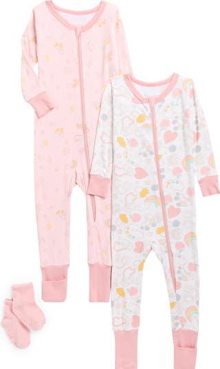 A dreamy pattern welcome uninterrupted sleep on convertible footie pajamas made from soft and stretchy jersey with grips on the feet for steady steps.