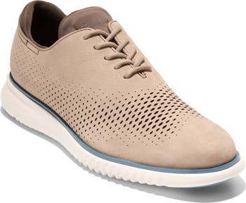 Wingtip-inspired gradient perforations wrap a hybrid leather shoe that pairs a whole-cut upper with a sporty interior sock and sneaker sole. Signature GRANDFØAM™ technology in the footbed provides anatomically engineered cushioning and support for all-day comfort.