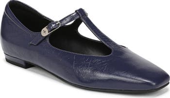 An adjustable T-strap offers a secure fit and retro aesthetic on a square-toe flat featuring Contour+ Comfort technology for pressure distribution, less fatigue and longer wear.