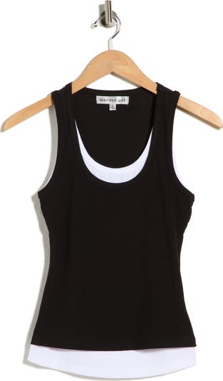 Get the cool look of two pieces in one easy style with this ribbed tank with a layered look.