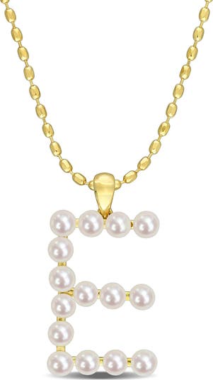 Customize your neckline with this elegant initial necklace boasting a lustrous pendant shimmering with dainty freshwater cultured pearls.