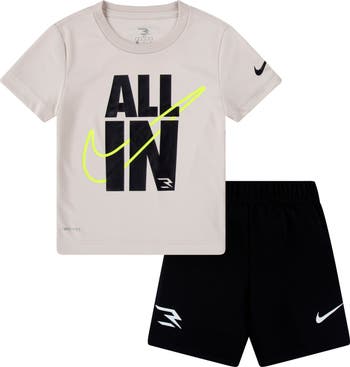 Dri-FIT moisture-wicking technology drives lasting comfort to a bold graphic printed tee and pull-on shorts made for extra time on the playground.