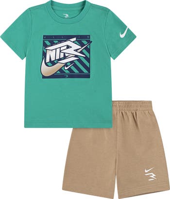 Ready for play, this baby-approved set features a jersey knit T-shirt with a gradient logo graphic and coordinating French terry shorts for all-day comfort.