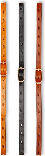 A pack of three simple skinny belts with gleaming buckles offer an effortless way to transform any ensemble.