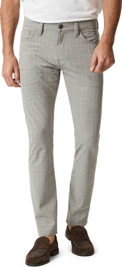A tonal check pattern covers stretchy, five-pocket straight-leg pants that look great any day of the week.