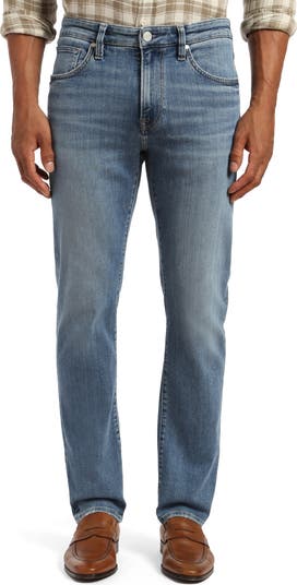 Faded denim with plenty of comfortable stretch makes these lightly tapered straight-leg jeans perfect for weekdays and weekends alike.