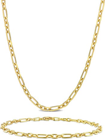 Elevate any daytime or evening ensemble with this figaro and rolo link necklace and matching bracelet set made from warm goldtone plated sterling silver.