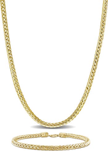 Add essential shine to any ensemble with foxtail-chain necklace and matching bracelet set made from warm goldtone plated sterling silver.