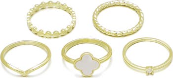 These gleaming rings plated in 14-karat gold are detailed with sparkling settings or textured designs.