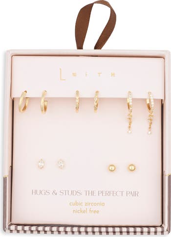 You'll have five perfect pairs with this assorted set of huggie and stud earrings sprinkled with cubic zirconia here and there.