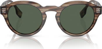 These prescription-compatible sunglasses crafted in Italy feature a classic round silhouette and demure logos at each temple.