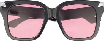 Gleaming accents pop at the flared edges of these square sunglasses featuring designer branding at the temples.