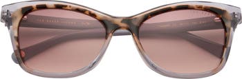 Angular cat-eye frames and logo-marked temples distinguish everyday sunglasses rendered in lightweight acetate and fitted with scratch-resistant CR-39 lenses.