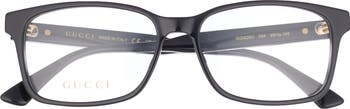 Thick frames with gleaming designer branding make these square optical glasses a standout choice for your prescription.