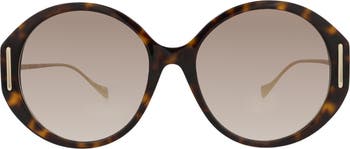Round frames bring a bold attitude to these sunglasses finished with UV-protective lenses and signature logo branding for a touch of designer flair.