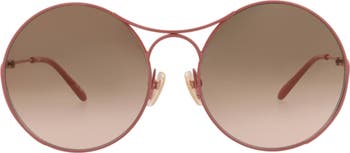 Retro-inspired round sunglasses get a designer update with a unique bridge and gleaming logo-marked temples.