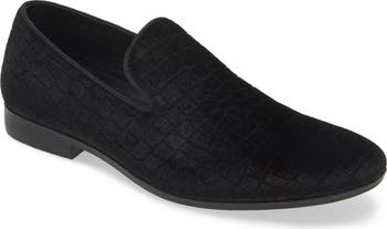 Herringbone patterns create a unique texture on this breezy smoking slipper inspired loafer.