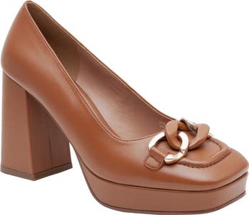 Matte and goldtone chain links make a contemporary statement on this loafer-inspired platform pump.