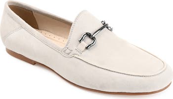 A gleaming metal bit lends contemporary sophistication to a polished loafer set on a cushioned footbed for long-lasting comfort.