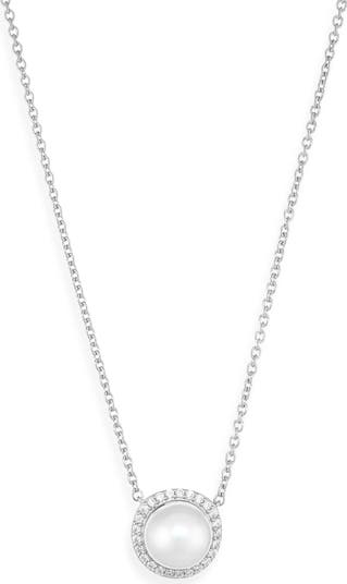 7.5-8mm Cultured Pearl Halo Pendant Necklace